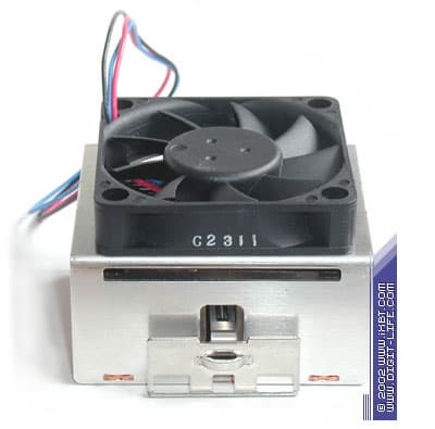 Первый беглый взгляд на кулеры 37256 приводит пользователя, привыкшего к «аэрокосмической» внешности изделий от Molex, в некоторое замешательство. Кажется, здесь явно что-то не то, как-то уж очень все обыденно и совершенно не в стиле Molex: незатейливый на вид медно-алюминиевый радиатор с габаритами 70х63х35 мм и простой крепеж не внушают особого оптимизма. Свидетельство в пользу принадлежности этих кулеров к касте Molex вроде только одно фирменная наклейка на радиаторе.