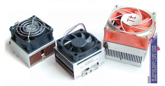 Слева направо: кулеры Cooler Master HCC-002, Molex 37256-0005, Thermaltake Volcano 9