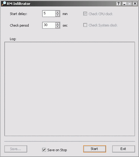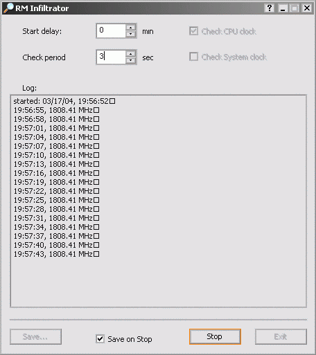 В том случае, если отмечена опция «Save on Stop» — то по нажатию кнопки «Stop» в каталоге, из которого была запущена программа, появится лог примерно такого вида. Как видите, все очень просто и незамысловато: утилита RM Spy (RM Infiltrator) предназначена для выполнения всего одной функции, поэтому набор опций и режимов использования минимален. С другой стороны, как нам кажется, он вполне достаточен для решения основной задачи — динамического отслеживания изменения частоты процессора.