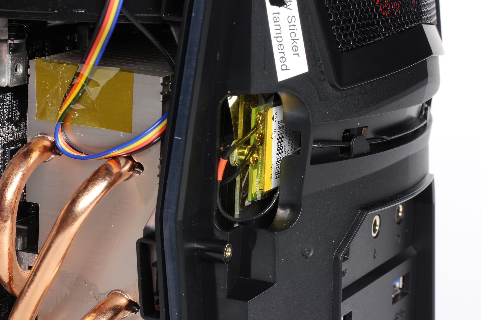 В плане возможностей по разборке и апгрейду компьютер MSI Vortex G65 6QF SLI ожидаемо не слишком дружелюбен к пользователю. Можно легко снять боковые панели корпуса и верхнюю панель, но на этом всё. Разобрать компьютер дальше без последствий нельзя — вы лишаетесь гарантии. (Кстати, у Mac Pro в этом плане все еще хуже: там вы сразу лишаетесь гарантии при попытке хоть что-нибудь открыть.)
