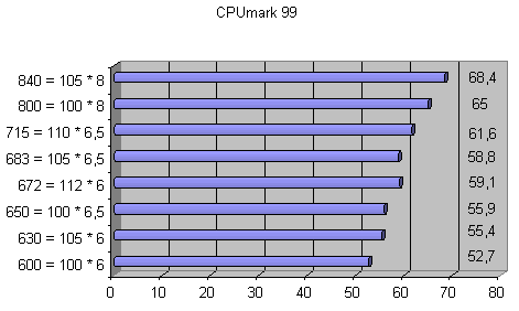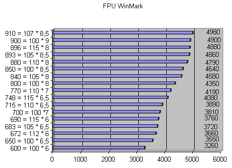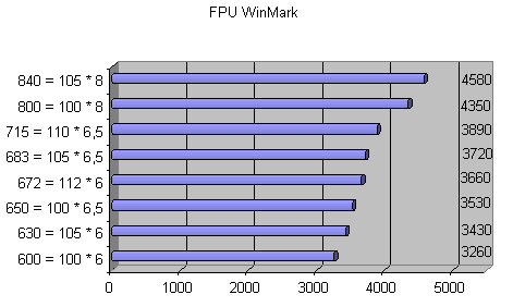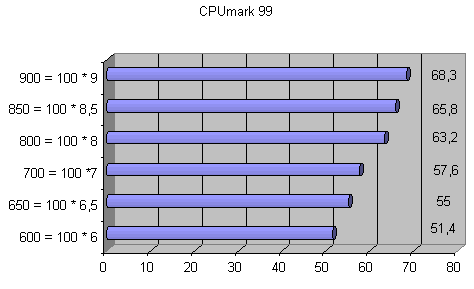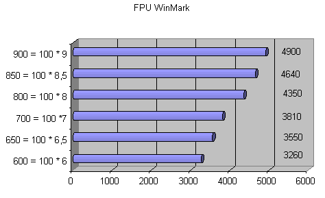 | Частота процессора = Частота шины * множитель | CPUmark 99 | FPU WinMark |