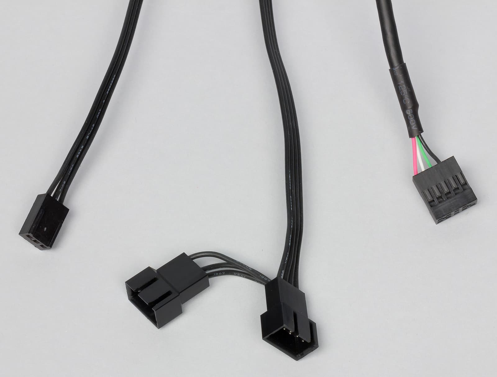 От помпы отходит несколько кабелей. Один 3-контактный необходим для подключения к штатному разъему на системной плате для обеспечения питания помпы, а другой представляет собой Y-разветвитель для подключения двух вентиляторов охлаждения. Последний, третий кабель выполнен в виде стандартного внутреннего USB-разъема для подключения к системной плате. Этот кабель служит для управления системой охлаждения посредством фирменной утилиты CAM, пару слов о которой мы расскажем чуть ниже.
