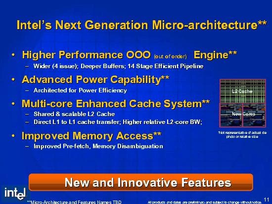 Посмотрим теперь, что говорится о новой микроархитектуре в презентации на форуме IDF.
