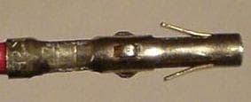 Контакты зафиксированы в пластмассовой части разъёма при помощи пары отгибающихся металлических «усиков». Не составляет труда извлечь контакт, придавив выступающие части тонким шилом или маленькой отвёрткой. После этого «усики» нужно опять разогнуть в стороны, и вставить контакт в соответствующее гнездо пластмассовой части разъёма: