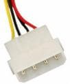 В некоторых случаях используется не один молекс-разъём, а пара «мама-папа»: так можно подключить вентилятор к тому же проводу от блока питания, который запитывает жёсткий диск или оптический привод. Если вы переставляете контакты в разъёме, чтобы получить на вентиляторе нестандартное напряжение, обратите особое внимание на то, чтобы переставить контакты во втором разъёме в точности таком же порядке. Невыполнение этого требования чревато подачей неверного напряжения питания на жёсткий диск или оптический привод, что наверняка приведёт к их мгновенному выходу из строя.