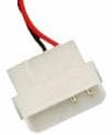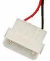 Ключом разъёма служат скошенные углы с одной из сторон. Провода подключены следующим образом: два центральных — «земля», общий контакт (чёрный провод); +5 В — красный, +12 В — жёлтый. Для питания вентилятора через молекс-разъём используются только два провода, обычно чёрный («земля») и красный (напряжение питания). Подключая их к разным контактам разъёма, можно получить различную скорость вращения вентилятора. Стандартное напряжение в 12 В запустит вентилятор со штатной скоростью, напряжение в 5—7 В обеспечивает примерно половинную скорость вращения. Предпочтительно использовать более высокое напряжение, так как не каждый электромотор в состоянии надёжно запускаться при чересчур низком напряжении питания.