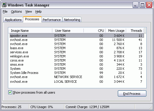 Также не стоит забывать, что в классической SMP-системе оба процессора работают каждый со своим кэшем и набором регистров, но память у них общая. Поэтому если две задачи одновременно работают с ОЗУ, мешать они друг другу будут все равно, даже если CPU у каждой «свой собственный». Ну и наконец последнее: в реальности мы имеем дело не с одним, не с двумя, и даже не с тремя процессами. На приведенном коллаже (это действительно коллаж, потому что со скриншота Task Manager были удалены все пользовательские процессы, т. е. приложения, запускаемые «для работы») хорошо видно, что «голая» Windows XP, сама по себе, не запустив еще ни одного приложения, уже породила 12 процессов, причем многие из них к тому же еще и многопоточные, и общее количество потоков достигает двухсот восьми штук (!!!).