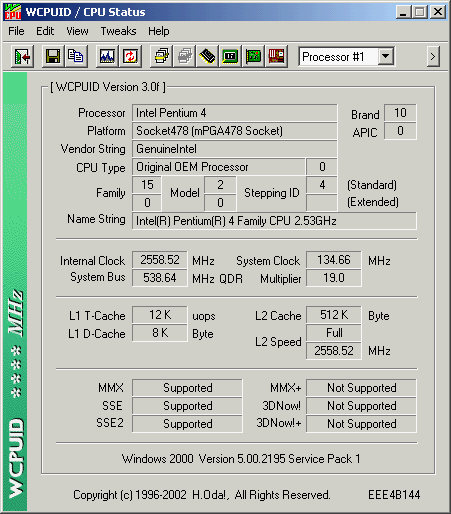 - Intel Pentium 4 2,53 ГГц (133x19), Socket 478