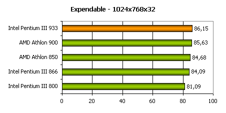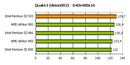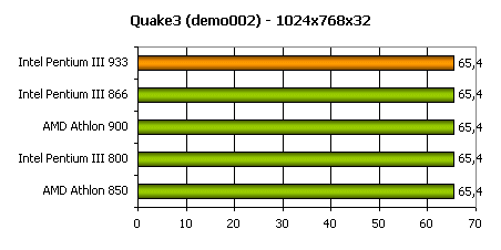 Итак, результаты тестов по всем игровым приложения повторяют друг друга. И AMD Athlon и Intel Pentium III, работая на близких частотах, показывают близкое быстродействие.