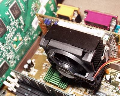Вторым, и несколько более неприятным фактом, является то, что Intel Pentium III 933 FC-PGA поставляется с кулером очень большого размера. Именно из-за размеров радиатора у Pentium III 933 могут возникать проблемы при установке в некоторые системные платы. Примером такой системной платы может являться Gigabyte 6VX7-4X, у которой конденсаторы, расположенные вокруг разъема Socket 370 не дают установить большой кулер, входящий в поставку Pentium III 933.