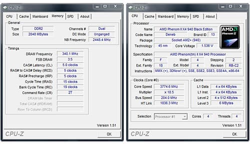 | AMD Phenom II X4 940 Black Edition , 3775 МГц, CPU NB 2448 МГц | |