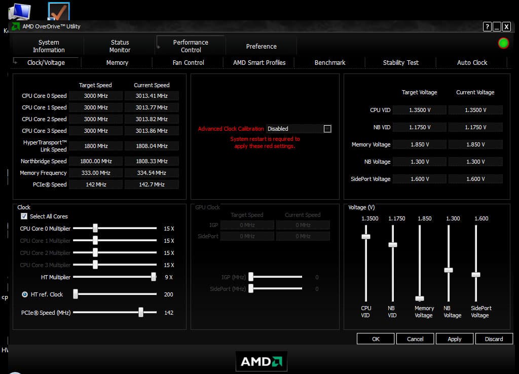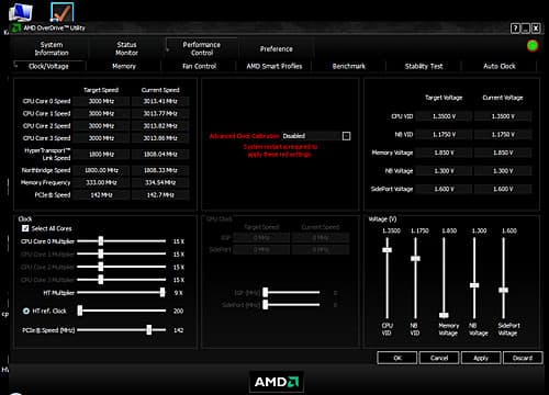 Для его ускорения можно использовать как повышение множителя, так и увеличение частоты тактового генератора. По умолчанию CPU NB работает на скорости 1800 МГц (200х9). При этом, как показала практика, максимальная стабильная частота CPU NB не уменьшается по мере разгона ядер процессора.