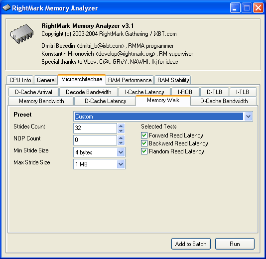 Пришло время очередного анонса новой версии универсального тестового пакета RightMark Memory Analyzer. Пожалуй, главное, что можно сказать о ней это то, что тенденция, намеченная с момента предыдущего релиза RMMA 3.0, сохранилась и, будем надеяться, сохранится и далее. А именно, количество нововведений вновь больше, чем какой бы то ни было «работы над ошибками». Изменения, конечно, также имеются, но в основном такие, чтобы сделать некоторые тесты более понятными, а, следовательно, более удобными в использовании. Их рассмотрением мы и откроем это небольшое приложение.