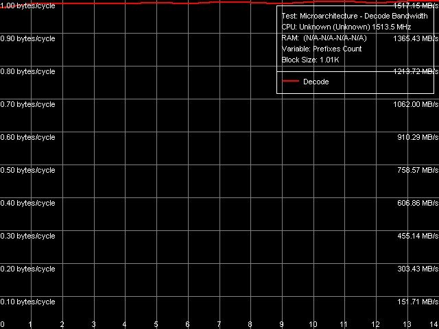 Это подтверждает и отдельный подтест Prefixed NOP Decode Efficiency, в котором осуществляется декодирование/исполнение инструкций вида [66h]nNOP, n = 0..14 (рис. 15).