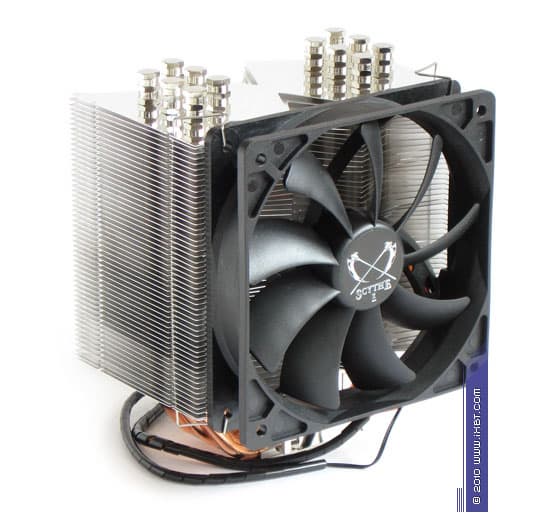 Конструктивные особенности (радиатор). «Рабочее тело» кулера образовано комбинацией медного теплосъемника 50x47x2 мм, вспомогательного алюминиевого радиатора 42х78х28 мм, шести медных тепловых трубок диаметра 6 мм и секции алюминиевого оребрения (54 пластины усложненной формы, общая площадь поверхности теплообмена порядка 9000 см2).