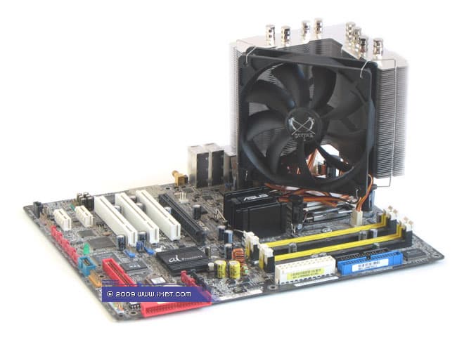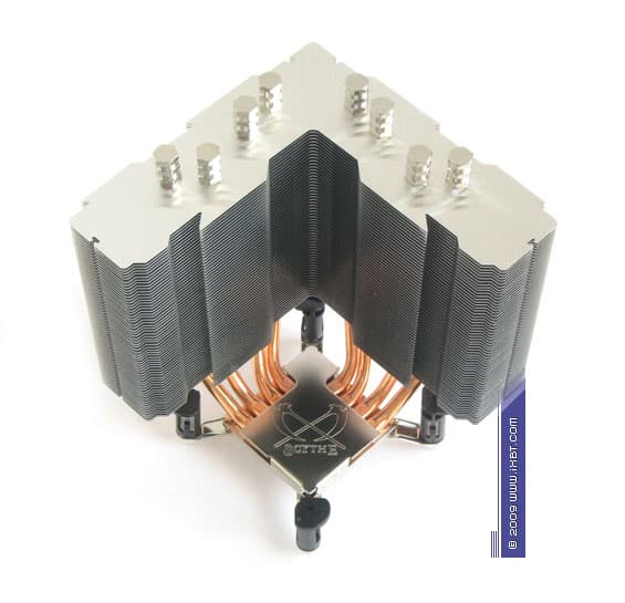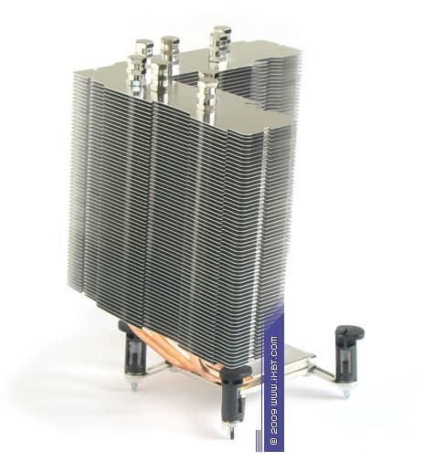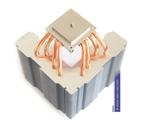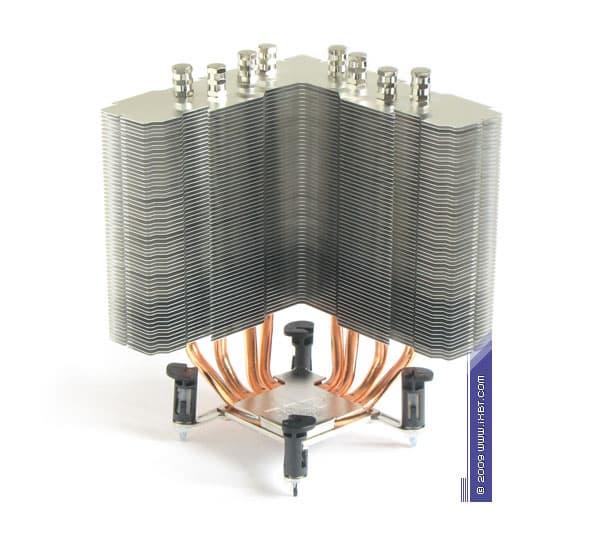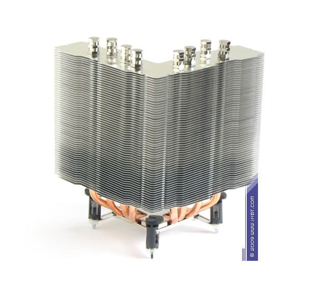 Конструктивные особенности (радиатор). «Рабочее тело» кулера образовано комбинацией медного теплосъемника 52х52х6 мм, 4 медных тепловых трубок диаметра 6 мм и «стреловидного» алюминиевого оребрения (60 двухсоставных пластин, общая площадь поверхности теплообмена порядка 8500 см2).