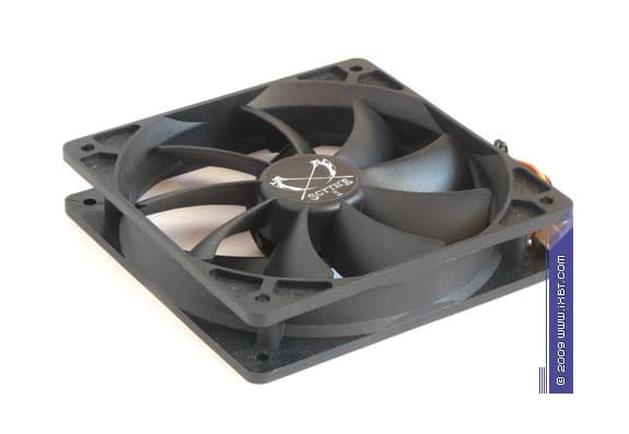 Чтобы прояснить этот вопрос, на радиатор подопытного кулера был установлен дополнительный высасывающий вентилятор Scythe Slip Stream (со ступенчатым изменением скорости вращения крыльчатки по отметкам 700, 900 и 1300 об/мин).