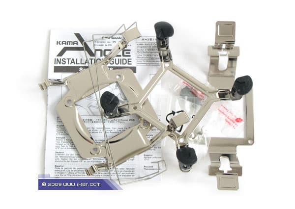 Эксплуатационная эргономика. Установочный комплекс продукта довольно прост для фиксации радиатора на платформе Intel LGA775 предусмотрена специализированная монтажная планка с референсными замками-кембриками, не сложнее обустроена и планка, ориентированная на системы AMD (с двумя весьма удобными ручками-упорами). В большинстве случаев комплектный крепеж не требует изъятия материнской платы из корпуса, так что, процесс инсталляции Kama Angle почти не отличается от манипуляций с типовыми боксовыми кулерами (за вычетом подкручивания монтажных планок собственно к самому теплосъемнику радиатора).