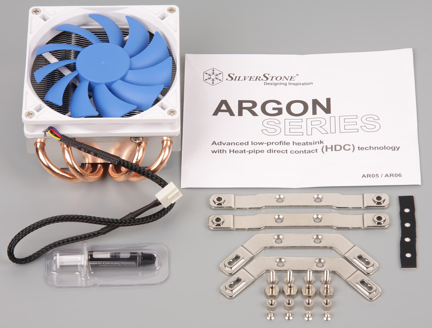Как и рассмотренные ранее AR07 и AR08, кулер SilverStone AR06 входит в серию Argon и также имеет вынесенный на тепловых трубках радиатор с принудительным охлаждением. Однако AR06 — это уже низкопрофильный вариант процессорного охладителя, предназначенный для использования с не очень «горячими» процессорами.