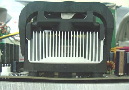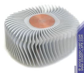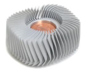 Что касается медного сердечника, то его достоинства очевидны: кардинальное различие коэффициентов теплопроводности меди и алюминия у всех на слуху. Однако нельзя забывать и о чисто технологических моментах, когда «грязный», некачественный тепловой контакт алюминиевого контура и медного сердечника может срезать на корню все преимущества такой комбинированной конструкции. К чести AVC, все технологические нюансы не оставлены без внимания, и, по заверениям инженеров компании, «опрессовка» радиаторов производится с четким соблюдением требований соответствующих технических условий, чем гарантируется почти идеальное качество теплового контакта контура и сердечника.