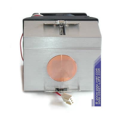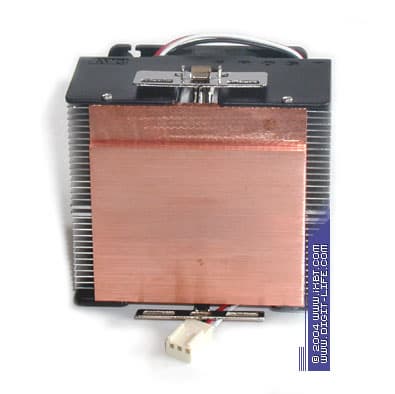 112С80, будучи типическим «супермалобюджетным» продуктом, выглядит непритязательно: кулер базируется на хиленьком алюминиевом радиаторе 78х60х45 мм с архаичными параметрами оребрения (толщина ребра 1 мм, шаг 2 мм), оборудован вентилятором типоразмера 60х60х15 мм со скоростью вращения крыльчатки 4500 об/мин и укомплектован простым двухконтакным крепежом.