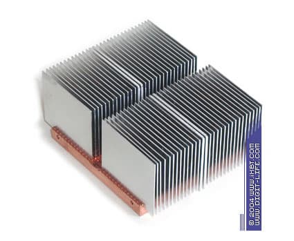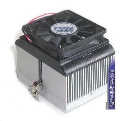 Еще один представитель бюджетного семейства AVC Z6M330, представляется уже намного более аппетитным продуктом. Изюминка этого кулера комбинированный медно-алюминиевый радиатор 73х60х33 мм, выполненный по фирменной технологии Crimp Fin (оребрение тут образовано секцией алюминиевых пластин толщиной 0,3 мм, запрессованных в медную подошву специализированным техпроцессом). Другие причиндалы вентилятор типоразмера 60х60х15 мм (со скоростью вращения крыльчатки 4000 об/мин) и нормативный шестиконтактный крепеж, Z6M330 заимствует у коллеги 112С86L.