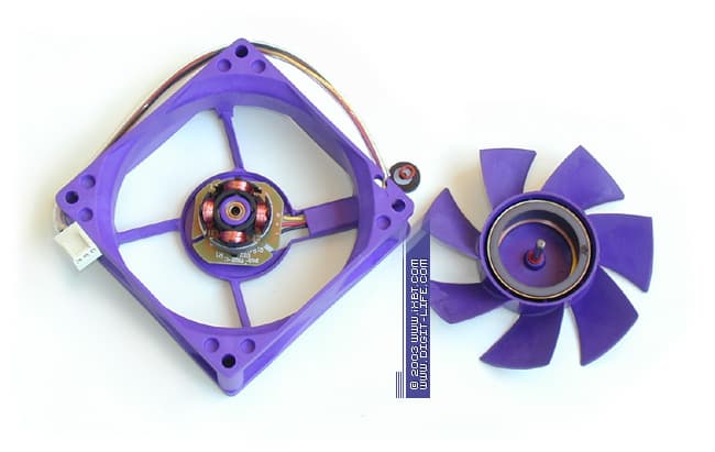 Отдельного внимания заслуживает также и вентилятор, установленный на борту VultureSpin (модель Fanner Tech FD08025B1L). Следует отметить, этот вентилятор весьма недурственно проявляет себя в электромеханическом плане: FD08025B1L имеет хорошо сбалансированную крыльчатку, демонстрирует добротный двухфазовый индуктор, приятного качества комбинированный подшипник (подшипник качения плюс подшипник скольжения), аккуратный монтаж управляющей схемы.