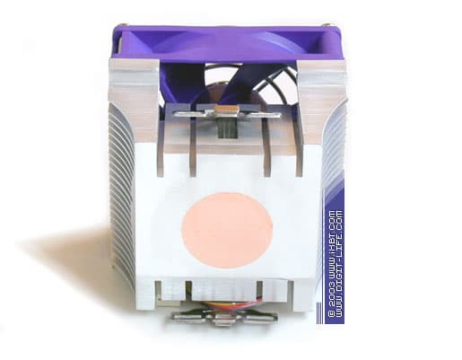 Однако практика показывает несколько иной, гораздо более интересный имидж этого кулера. Один известный рекламный слоган небезосновательно гласит: «Все дело в пузырьках!». Здесь тоже, оказывается, все дело кроется в спасительных «пузырьках», роль которых с успехом отыгрывает хитроумная конфигурация подошвы радиатора FireStar. В этой подошве обустроены четыре внутренних вентиляционных канала, чем усиливается интенсивность теплообмена в нижней, наиболее горячей области радиатора. И хотя в термальной теории все это дело выглядит весьма противоречиво, реальная жизненная польза от данного мероприятия, совместно с благотворным влиянием медного диска, все-таки имеют место быть.