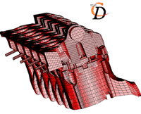 Расчет течения охлаждающей жидкости в рубашке охлаждения блока цилиндров автомобильного двигателя (чистая гидродинамика без теплопереноса). Тест представляет собой задачу небольшой размерности, которая, при решении на однопроцессорной системе требует менее 1ГБ оперативной памяти, количество ячеек приблизительно 150.000.