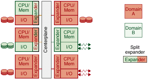 В качестве доменов может выступать от одной до нескольких системных плат. Домен является полноценным SMP-компьютером, на котором можно производить все необходимые вычисления и пользоваться общесистемными ресурсами (дисками и т.п.).