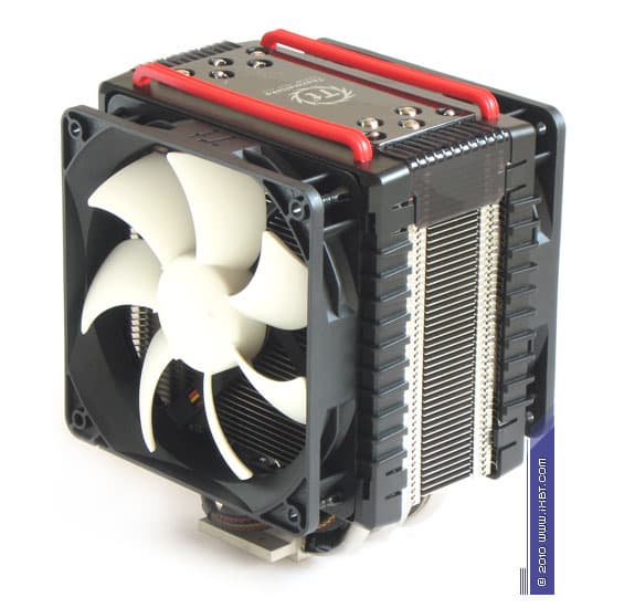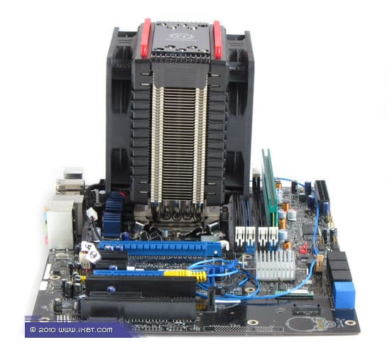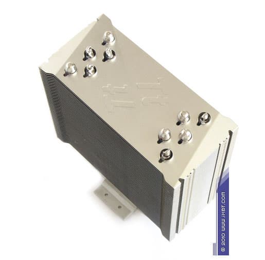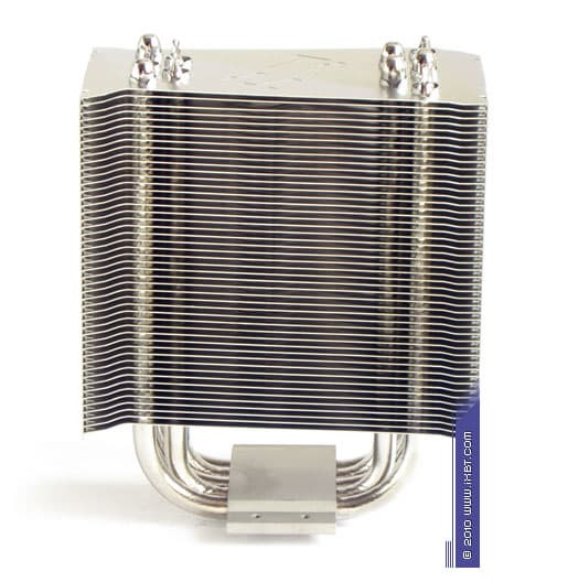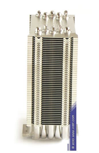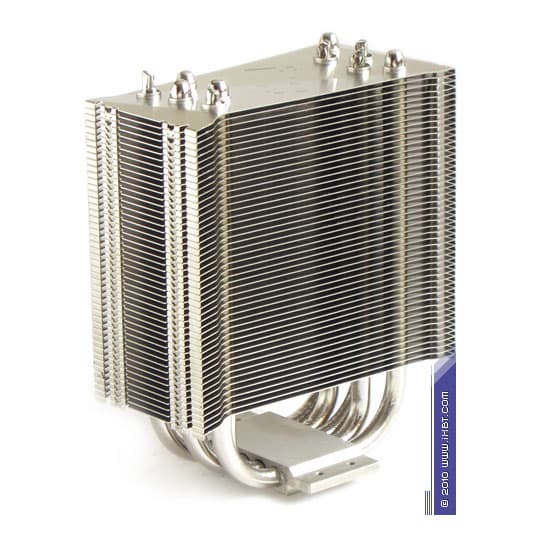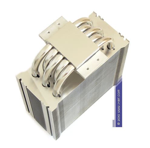 Конструктивные особенности (радиатор). «Рабочее тело» кулера образовано комбинацией составного медно-алюминиевого теплосъемника 35х75х12 мм, 5 медных тепловых трубок диаметра 8 мм и секции алюминиевого оребрения (48 пластин, общая площадь поверхности теплообмена порядка 7500 см2).