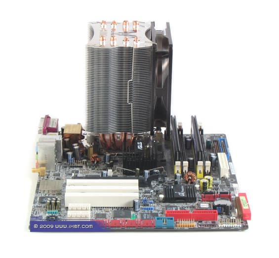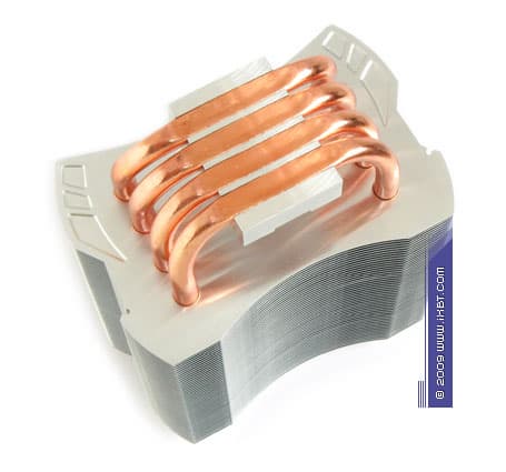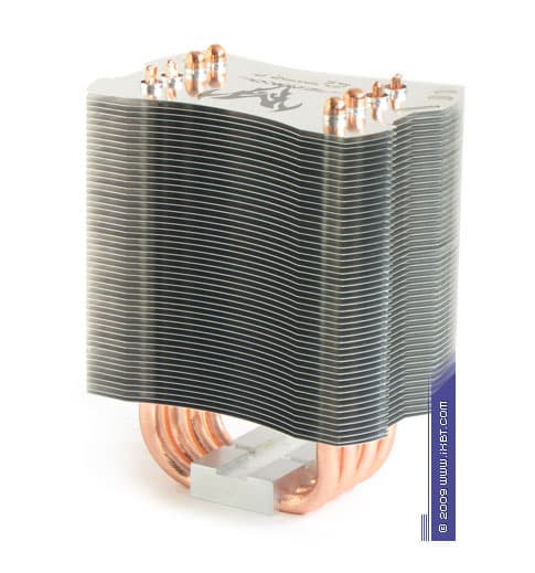 Конструктивные особенности (радиатор). «Рабочее тело» кулера базируется на технологии «прямого контакта» и имеет в своем составе 4 медных тепловых трубки диаметра 8 мм, алюминиевый механический держатель 35×49×13 мм и секцию алюминиевого оребрения (50 пластин, общая площадь поверхности теплообмена порядка 9000 см²).