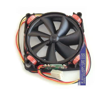 Но, с другой стороны, M2 укомплектован весьма интересным, можно даже сказать, уникальным вентилятором типа TMD (Tip Magnetic Driving fan) от Y.S. Tech (модель PD1270155B-2F). Ключевой особенностью этого вентилятора является специфическая электромеханическая конструкция: здесь обмотки индуктора вынесены в «обод» вентиляторного корпуса, за счет чего диаметр оси рабочего колеса (крыльчатки) сведен к минимуму. Такое инженерное решение кардинальным образом улучшает аэродинамические свойства вентилятора, по сравнению с «традиционными» моделями. Площадь проходной части у TMD-вентилятора намного больше, благодаря чему картина формируемого им воздушного потока практически лишена так называемой «мертвой зоны», присущей всем без исключения «среднестатистическим» вентиляторам. Если же «мертвая зона» отсутствует, то радиатор будет открыт всем ветрам и получает более интенсивную продувку. А это уже явный плюс кулера M2.