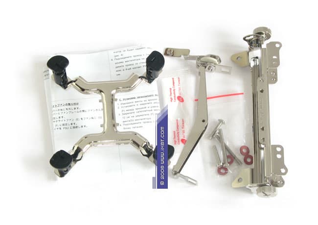 К слову, далеко не самый образцовый порядок соблюдается у BigTyp VP и в части эксплуатационных свойств. Да, конечно, тот многострадальный и чрезвычайно трудоемкий крепеж, что прилагался в комплекте родительских кулеров, сегодня благополучно отправлен на пенсию его заменяет обновленный комплект в составе истинно эргономичных и дружелюбных приспособлений (монтажная крестовина с референсными замками-кембриками под Intel LGA775 и фиксирующая скобка с поворотным рычагом под AMD Socket AM2). Казалось бы, чего еще тут можно желать? После всех тех утомительных манипуляций со старыми крепежными метизами, когда процесс установки «новичка» BigTyp VP выглядит просто райской сказкой по сравнению с Big Typhoon?
