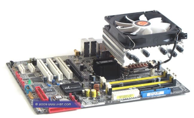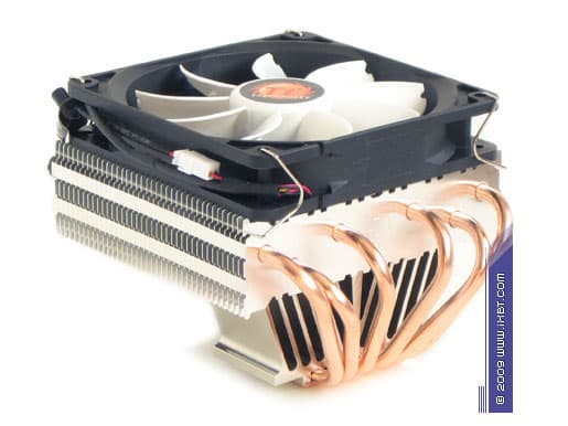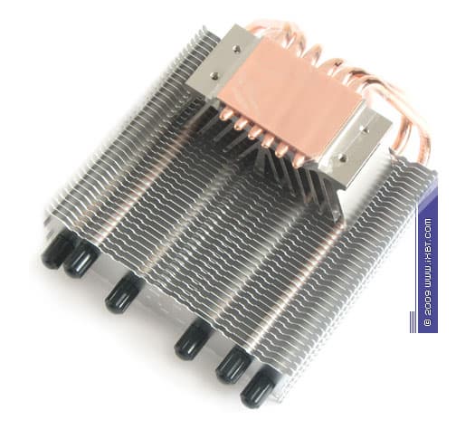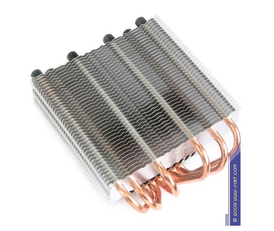 Конструктивные особенности (радиатор). «Рабочее тело» кулера составлено комбинацией медного теплосъемника 48х35х2 мм, вспомогательного алюминиевого радиатора 90х36х40 мм, 6 медных тепловых трубок диаметра 6 мм и секции алюминиевого оребрения (39 пластин, общая площадь поверхности теплообмена порядка 3000 см2).
