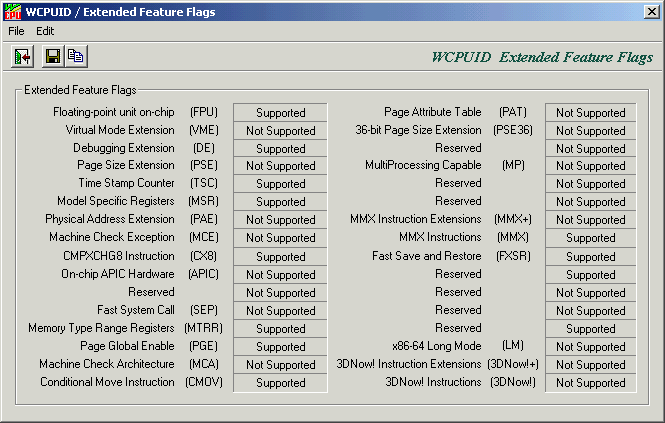 - Поддержка наборов процессорных инструкций MMX и SSE