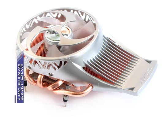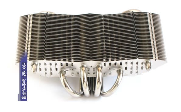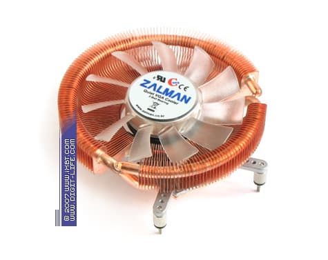 В конфигурационной детализации наш подопытный тоже не робеет, предлагая весьма интересный термический бонификатор вариативный шаг размещения пластин оребрения, на маркетинговом наречии Zalman именуемый Variable Fin Profile: по факту, общая совокупность пластин тут как бы разделена на 26 подгрупп, «внутренний» шаг в группе составляет 1 мм, а «внешний» (между соседними подгруппами) 1,5 мм. Все это позволяет внести некое разнообразие в перераспределение воздушного потока, создает более комфортные условия входа в межреберные каналы, способствуя интенсификации продува радиатора. Отдельного внимания заслуживает и очень аккуратное сопряжение элементов «рабочего тела» все взаимодействующие контуры теплосъемника, трубок и оребрения тщательно пропаяны, с обеспечением истинно оптимизированного термоконтакта.