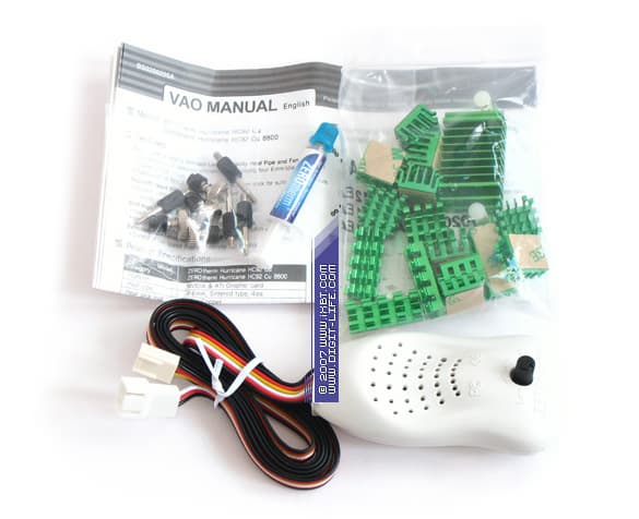 Очень хорош Hurricane HC92 Cu 8800 и в ракурсе эксплуатационного обихода: по технической идеологии крепежной системы он во многом схож с «коллегой» VF1000 LED от Zalman располагает родственными крепежными причиндалами, поддерживает установку на видеокартах GeForce 8800 GTX/Ultra, но несколько лимитирован по списку совместимых карт. В то же время, комплект поставки у нашего «новичка» будет явно побогаче: вместе с кулером тут приложен емкий набор радиаторов, как для чипов памяти, так и для силовых элементов (для GeForce 8800 GTX/Ultra дополнительно предусмотрен специальный радиатор под IO-чип), обращает на себя внимание еще и презанятный регулятор электропитания вентилятора, который призван варьировать обороты крыльчатки в пределах от 1400 до 3400 об/мин и снабженный нетипично удлиненным проводом (1 м против против 0,8 мм у известного Fan Mate 2).