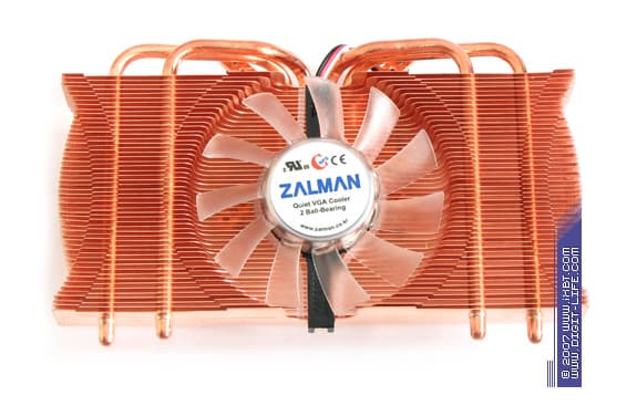 Единственным нареканием эксплуатационного толка тут может выступить отсутствие радиаторов на силовые элементы преобразователей питания карты. И если под видеокарты GeForce 8800 GTX/Ultra специализированный набор ребятами Zalman все-таки предусмотрен это продукт ZM-RHS88 (включает улучшенный радиаторный модуль, ориентированный на чипы памяти, плюс 2 варианта радиаторов на силовые элементы), то радиаторами под карты GeForce 8800 GT придется озаботиться самостоятельно например, использовать для этих целей комплект ZM-RHS1. Впрочем, и тот, и другой набор поставляются только опционально, за отдельные деньги, что, по большому счету, не очень-то позитивно.
