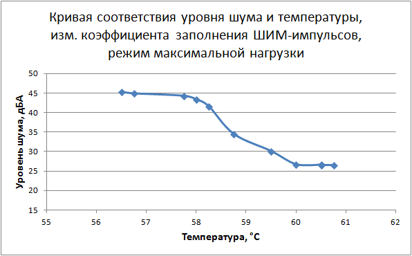 Этап 5. Построение кривой соответствия уровня шума и температуры в зависимости от скорости вращения вентилятора кулера при управлении с помощью ШИМ-импульсов и/или изменением напряжения питания