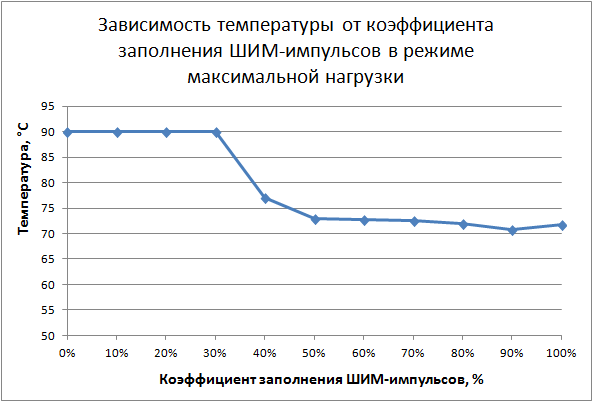 Этап 3. Определение зависимости температуры процессора при его полной загрузке от коэффициента заполнения ШИМ-импульсов и/или напряжения питания