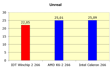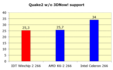 Результат не блестящий, но играть можно. Однако же, стоимость IDT Winchip 2 примерно совпадает с ценой AMD K6-2 той же частоты, потому с точки зрения производительности наиболее оптимальным выбором становится последний.