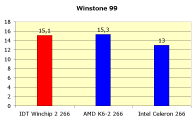 Первым делом мы проверили производительность IDT Winchip 2 по тесту Winstone 99, который позволяет оценить быстродействие процессора в офисных приложениях: