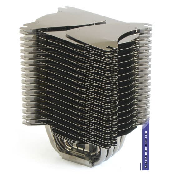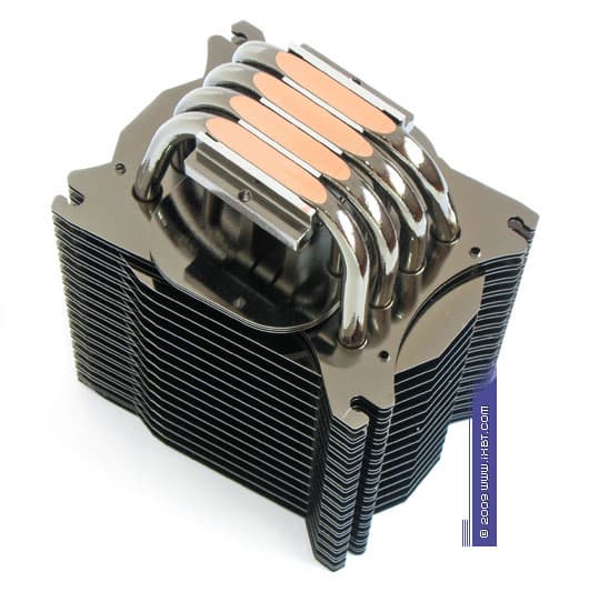 Конструктивные особенности (радиатор). «Рабочее тело» кулера базируется на технологии «прямого контакта» и имеет в своем составе 4 медных тепловых трубки диаметра 8 мм, 3 медных тепловых трубки диаметра 6 мм, алюминиевый механический держатель 40×53×13 мм и секцию алюминиевого оребрения (52 пластины, общая площадь поверхности теплообмена порядка 8000 см²).