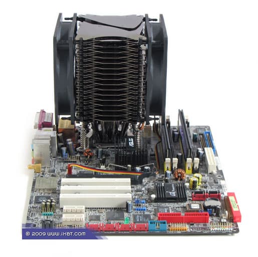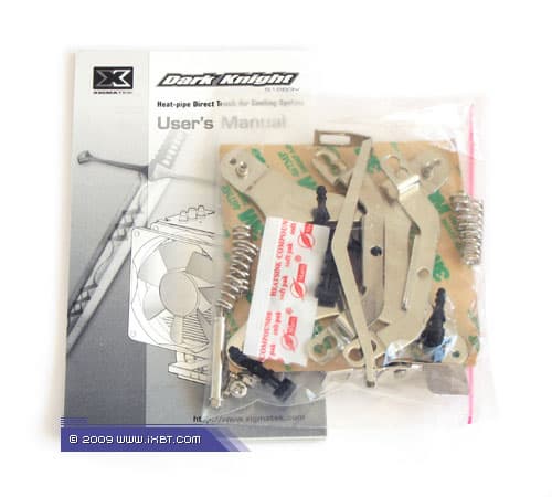Эксплуатационная эргономика. Инсталляционный комплекс продукта практически полностью повторяет мультплатформенный крепеж Thor's Hammer. Однако в контексте Dark Knight эти приспособления оказываются гораздо более практичными и целесообразными референсная клипса для платформ AMD обеспечивает уже вполне нормативную установку кулера (с гарантированно плотным прижимом), манипуляции с винтовым крепежом Intel LGA775 и LGA1366 также не вызывают каких-то реальных затруднений (доступ к винтам теперь полностью открыт, что существенно облегчает фиксацию радиатора).
