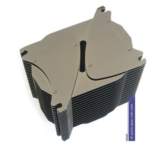 Конструктивные особенности (радиатор). «Рабочее тело» кулера базируется на технологии «прямого контакта» и имеет в своем составе 3 медных тепловых трубки диаметра 8 мм, алюминиевый механический держатель 50×53×14 мм и секцию алюминиевого оребрения (54 пластины, общая площадь поверхности теплообмена порядка 6000 см²).