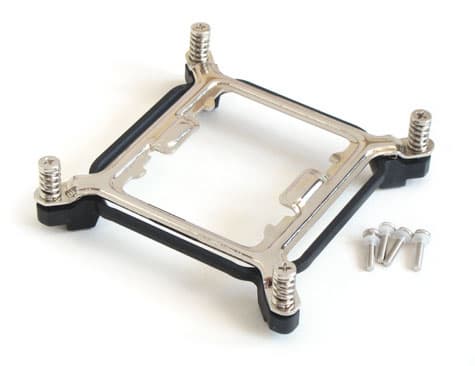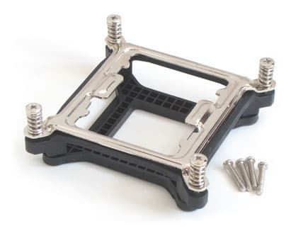 Схожая ситуация наблюдается и на платформе Intel LGA1366 (за той лишь разницей, что вспомогательная рамка там фиксируется без супинатора посредством винтов, приправленных пластиковыми шайбочками).