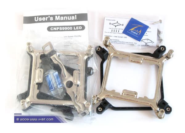 После вскрытия упаковки обнаруживаем комплект мультплатформенного крепежа (включая установочные приспособления под Intel LGA1366), фирменную термопасту ZM-STG1 (флакончик с кисточкой-аппликатором) и краткое техническое руководство.