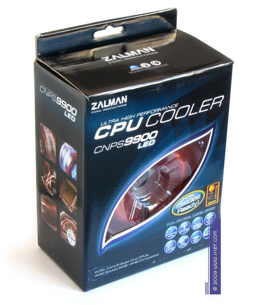 Как и подобает продукту высокого класса, CNPS9900 LED поставляется в аккуратной упаковке, снабженной внятным описанием внутреннего содержимого, с листингом технических характеристик и красочными фотографиями. Хорошо заметен и сам кулер, облаченный в пластиковый блистер.