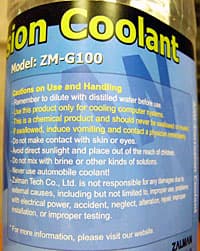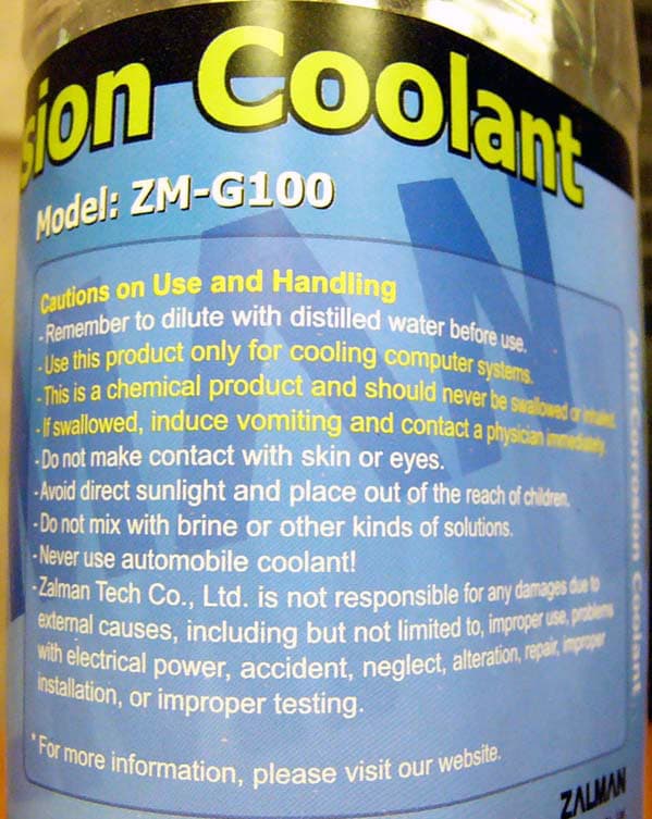 Объем 2,5 литра. Срок годности для работы 1 год. Температура замерзания минус 9 градусов по Цельсию. Призвание обеспечить долгий срок службы радиатору. Примечательно, что на этикетке разработчики пишут: «Never Use automobile coolant!» («Никогда не используйте автомобильный хладагент!»).